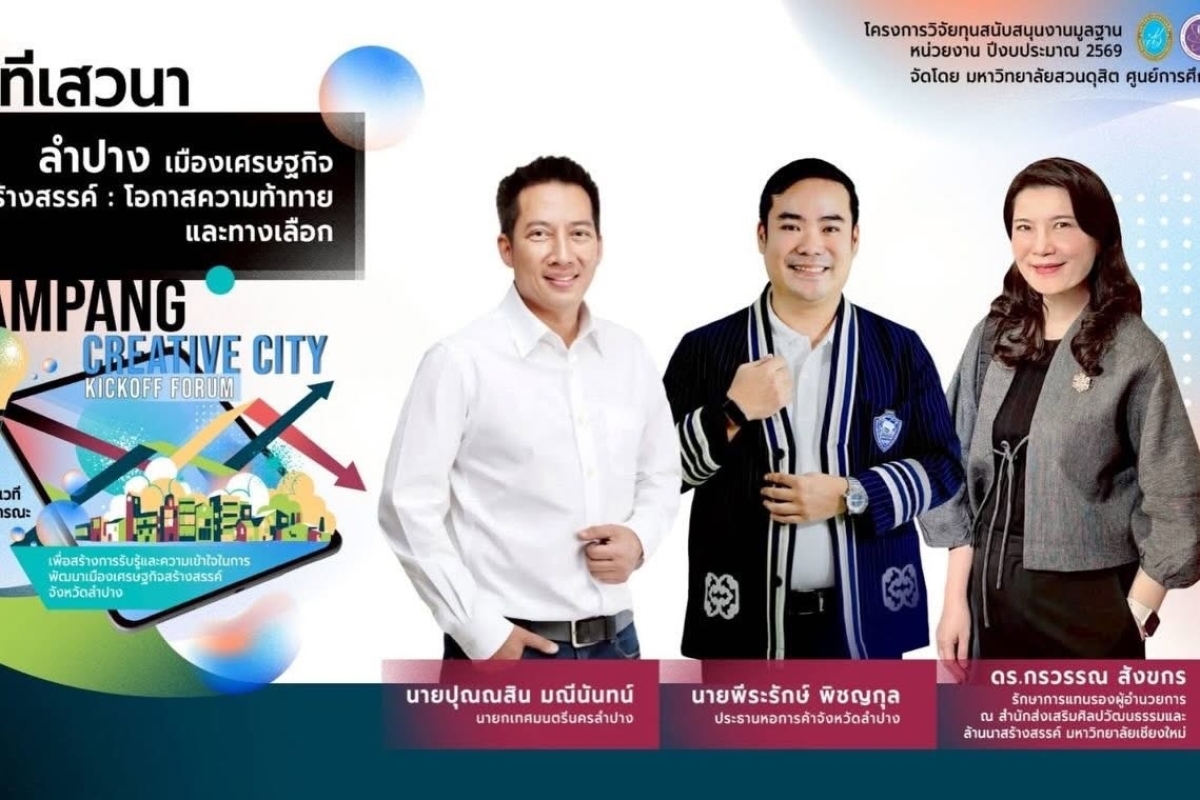 การจัดงานครั้งนี้จัดโดย มหาวิทยาลัยสวนดุสิต ศูนย์การศึกษาลำปาง ภายใต้โครงการวิจัย “การพัฒนาระบบกลไกเพื่อขับเคลื่อนลำปางสู่เมืองเศรษฐกิจสร้างสรรค์บนฐานเมืองแห่งการเรียนรู้” โดยมีเป้าหมายเพื่อเปิดพื้นที่แลกเปลี่ยนมุมมอง สร้างความเข้าใจร่วมกัน และกำหนดทิศทางการพัฒนาเมืองลำปางสู่เมืองเศรษฐกิจสร้างสรรค์อย่างยั่งยืน
