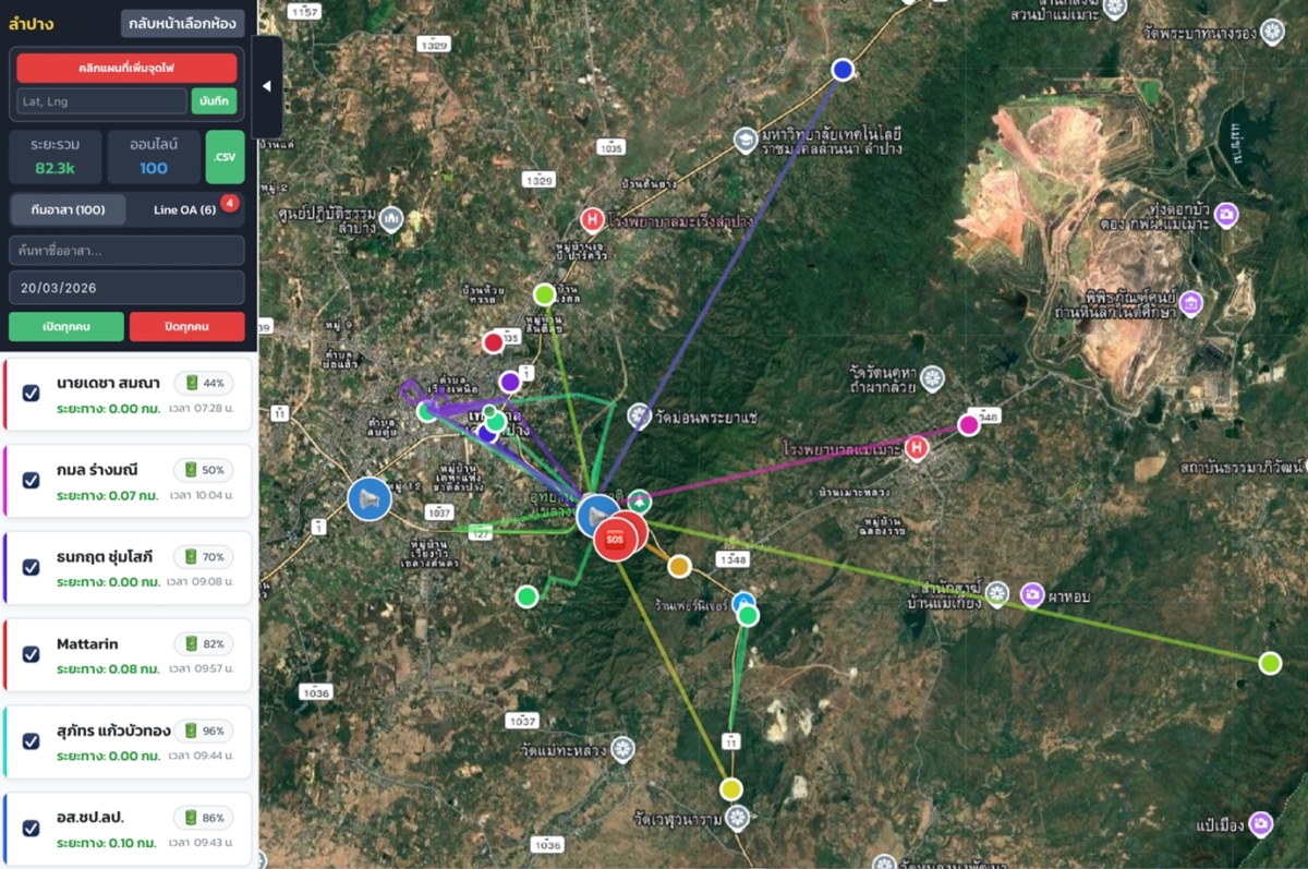 āļĢāļ°āļāļ Tuen Phai Tracking āđāļāđāļāļāļ§āļąāļāļāļĢāļĢāļĄāļāļĩāđāļāļąāļāļāļēāđāļāļ·āđāļāļŠāļāļąāļāļŠāļāļļāļāļāļēāļĢāļāļģāļāļēāļāļāļāļāļĻāļđāļāļĒāđāļāļāļīāļāļąāļāļīāļāļēāļĢ (War Room) āļĢāļ°āļāļąāļāļāļģāļāļĨ āđāļāļĒāļāļđāļĢāļāļēāļāļēāļĢāļāļēāļĢāļāļģāļāļēāļāļāđāļēāļ 3 āļāđāļāļāļāļēāļāļŦāļĨāļąāļ āđāļāđāđāļāđ āļĢāļ°āļāļāđāļ§āđāļāđāļāļāđ (Web Application) āļŠāļģāļŦāļĢāļąāļāđāļāđāļēāļĢāļ°āļ§āļąāļāļŠāļāļēāļāļāļēāļĢāļāđāđāļĨāļ°āđāļŠāļāļāļāđāļāļĄāļđāļĨāļŠāļģāļāļąāļ āđāļāđāļ āļāđāļēāļāļļāđāļ PM2.5 āđāļĨāļ°āļāļļāļāļāļ§āļēāļĄāļĢāđāļāļ (Hotspot) āđāļāļāđāļāļĨāđāđāļāļĩāļĒāļāđāļ§āļĨāļēāļāļĢāļīāļ āļĢāļ°āļāļāđāļāļāļāļĨāļīāđāļāļāļąāļāļāļāđāļāļĢāļĻāļąāļāļāđāļĄāļ·āļāļāļ·āļ (Android) āļŠāļģāļŦāļĢāļąāļāļāļīāļāļāļēāļĄāļāļģāđāļŦāļāđāļāđāļĨāļ°āđāļŠāđāļāļāļēāļāļāļēāļĢāļāļāļīāļāļąāļāļīāļāļēāļāļāļāļāđāļāđāļēāļŦāļāđāļēāļāļĩāđāļ āļēāļāļŠāļāļēāļĄāđāļāļāđāļĢāļĩāļĒāļĨāđāļāļĄāđ āđāļĨāļ°āļĢāļ°āļāļ Line Official Account (Line OA) āļŠāļģāļŦāļĢāļąāļāļāļēāļĢāļŠāļ·āđāļāļŠāļēāļĢ āđāļāđāļāđāļŦāļāļļāļāļļāļāđāļāļīāļ āđāļĨāļ°āļāļāļĢāļąāļāļāļēāļĢāļŠāļāļąāļāļŠāļāļļāļ