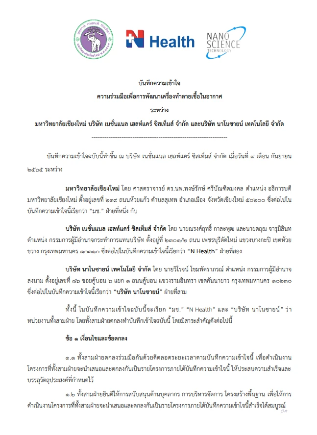 บันทึกความเข้าใจ ความร่วมมือเพื่อการพัฒนาเครื่องทำลายเชื้อในอากาศ |