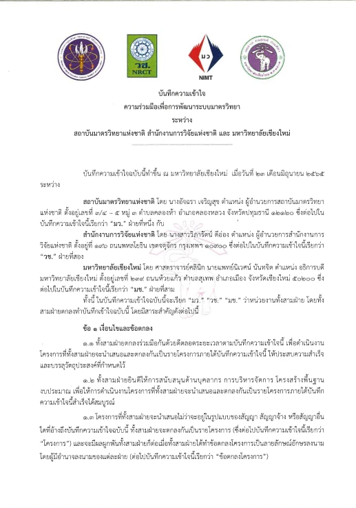 บันทึกความเข้าใจ โครงการศึกษาและพัฒนานวัตกรรม |