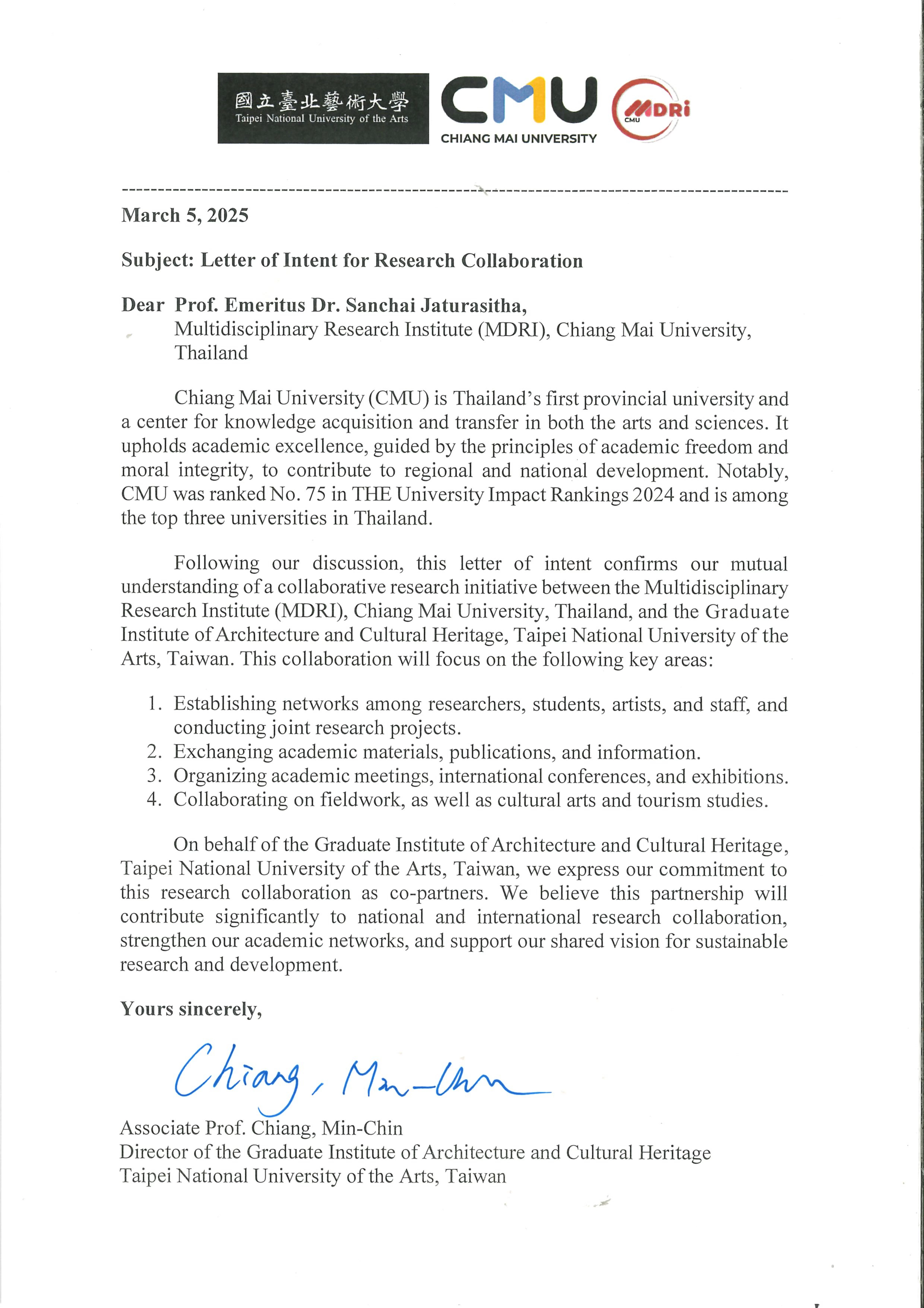 - Graduate Institute of Architecture and Cultural Heritage, Taipei National University of the Arts, Taiwan